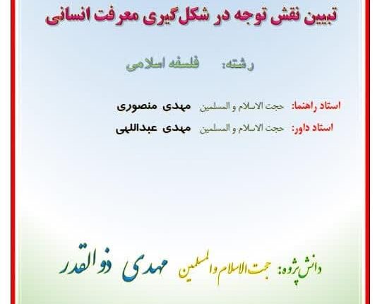 جلسه دفاع از رساله سطح سه حجت الاسلام مهدی ذوالقدر با عنوان نبیین نقش توجه در شکل گیری معرفت انسانی با راهنمایی استاد حجت الاسلام و المسلمین مهدی منصوری و داوری استاد حجت الاسلام و المنسلمین مهدی عبداللهی پنجشنبه ۱۵ دی ۱۴۰۱ در مرکز آموزش تخصصی فلسفه اسلامی برگزار می گردد.