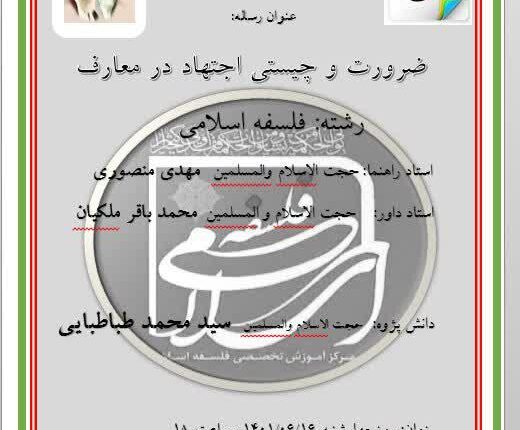 جلسه دفاع از پایان نامه «ضرورت و چیستی اجتهاد در معارف»